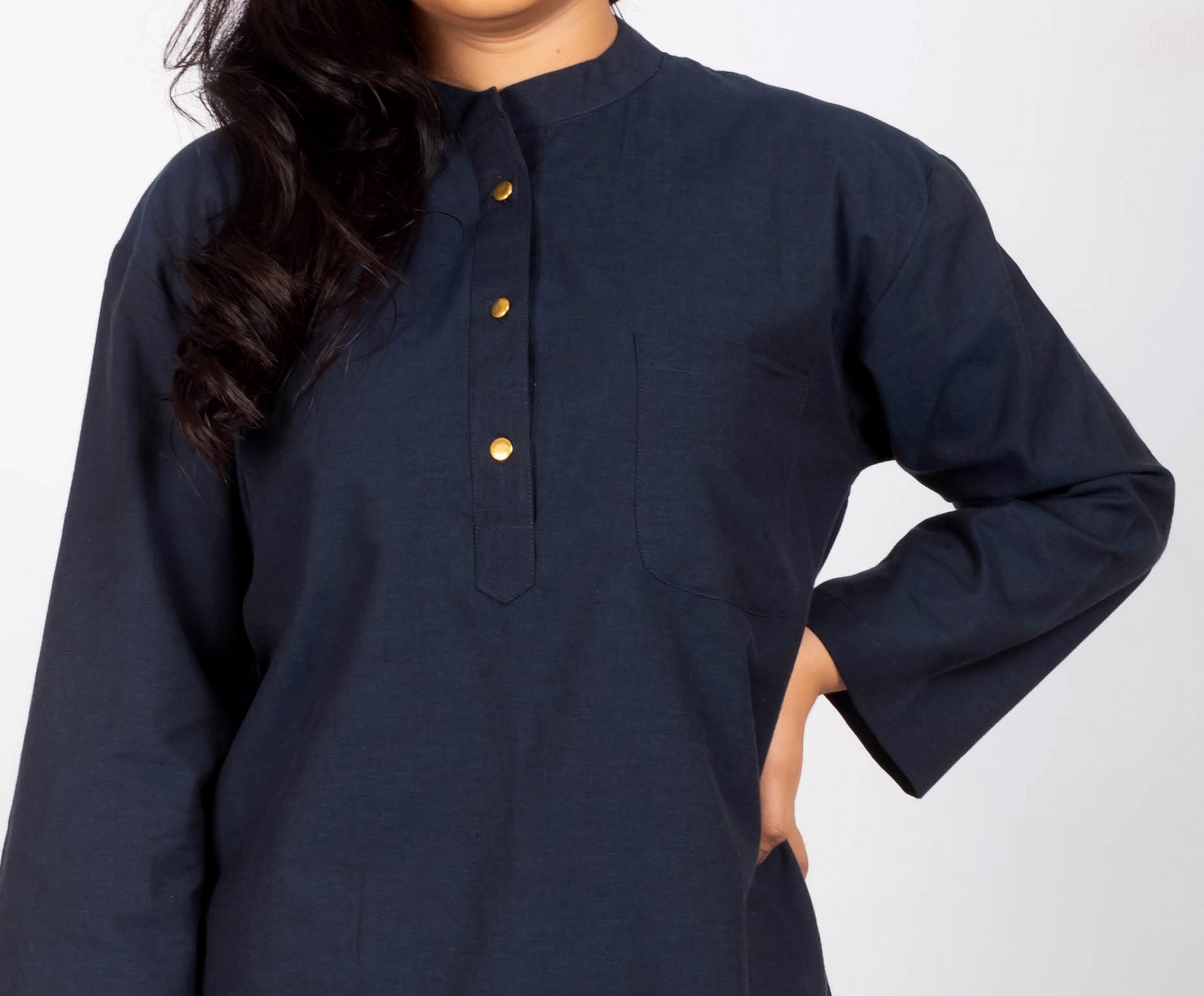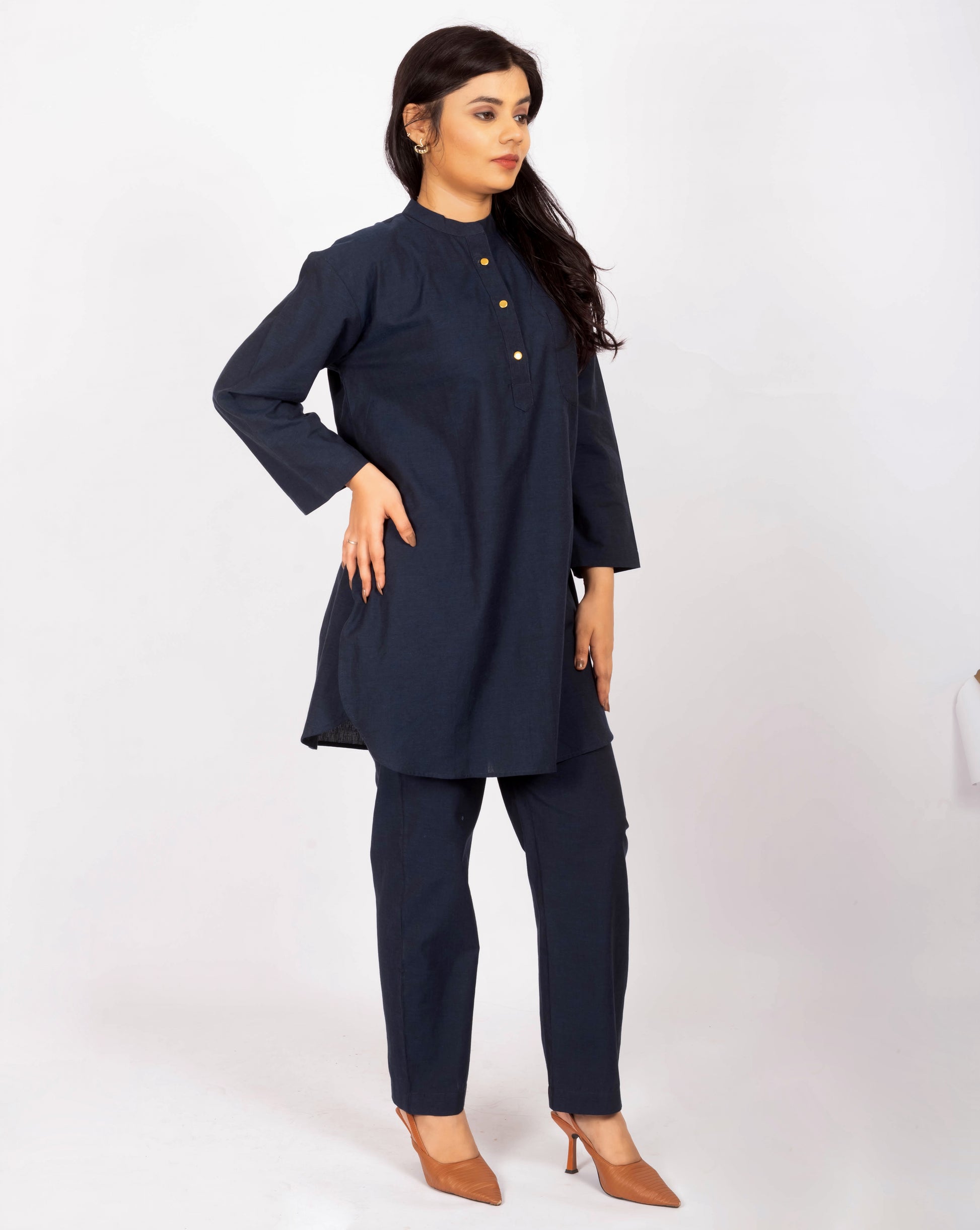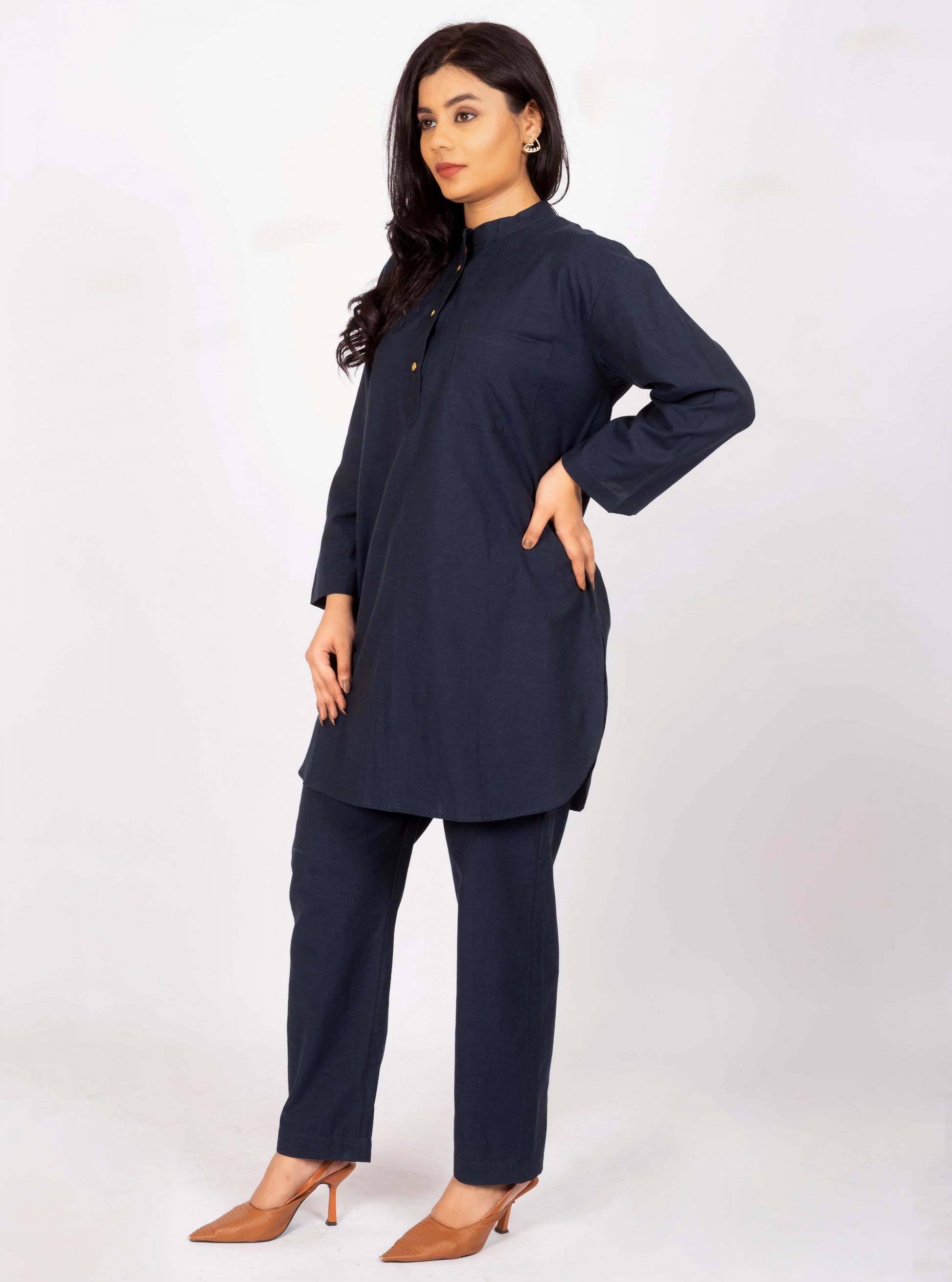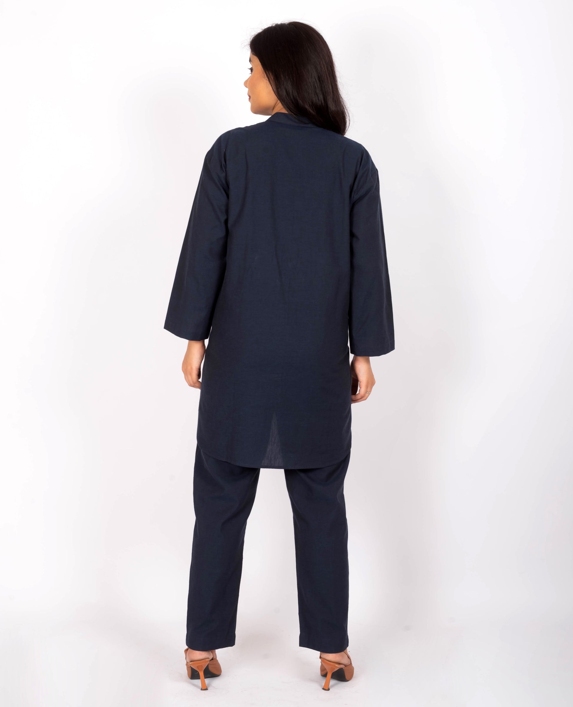 Elevate your airport style with our Luxe Navy Handloom Cotton Co-ord Set — a blend of comfort and understated sophistication. Crafted from breathable, soft-touch Handloom Cotton